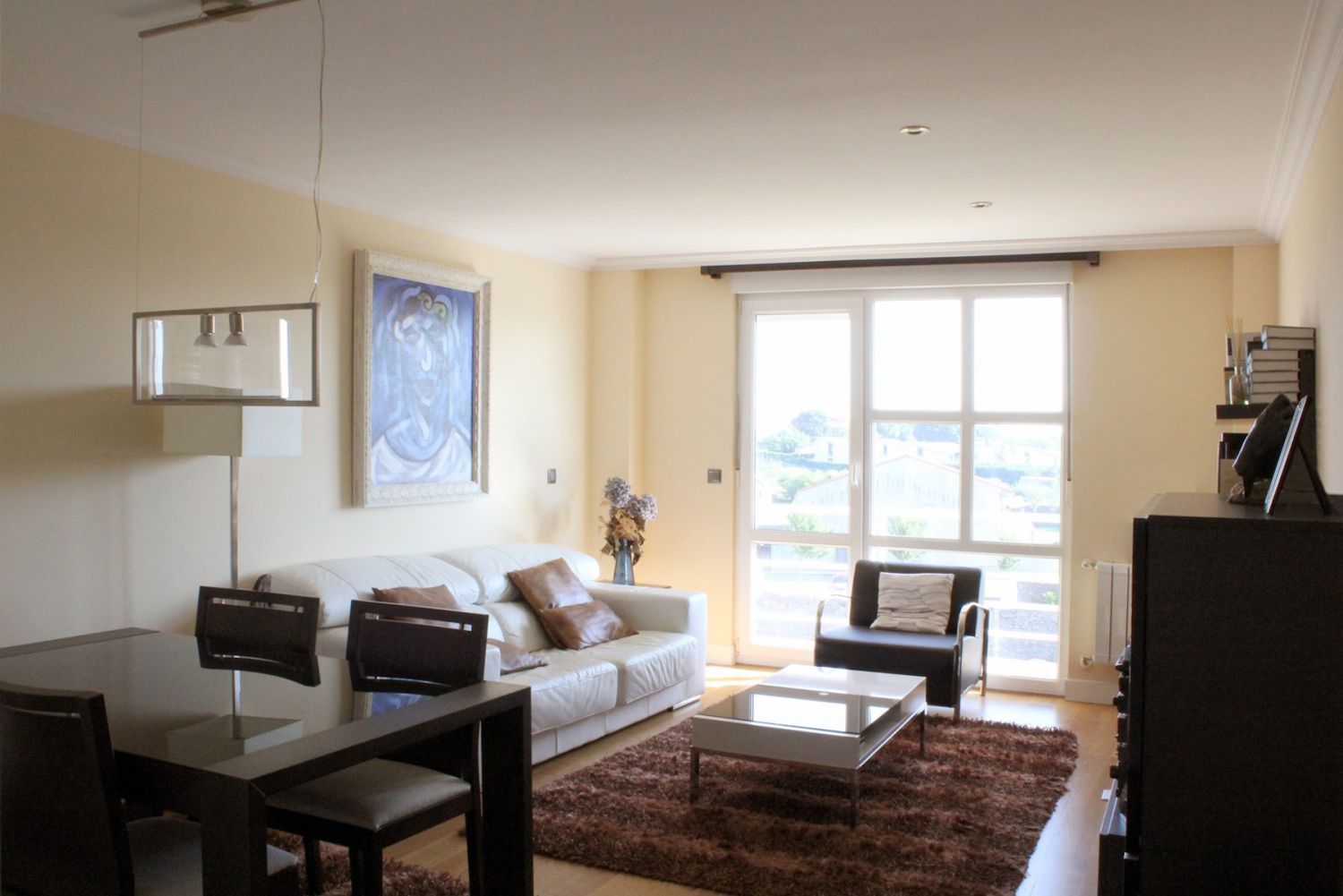 La vivienda dispone de un amplio salón € comedor, muy luminoso con un gran ventanal por el que se accede a una estupenda terraza para disfrutar de sus vistas hacia Peña Cabarga. Es un lugar que te permite disfrutar de un acogedor desayuno al sol al inicio del día o un aperitivo singular.